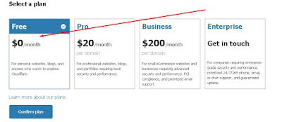 Di menu Select a Plan kalian pilih menu free ini menandakan kamu menggunakan fitur grats dari CloudFlare.