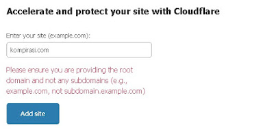 kalian masukan alamat domain yang ingin di protect CloudFlare kemudian kelik add site nah otomatis kalian akan di arahkan ke menu selanjutnya.